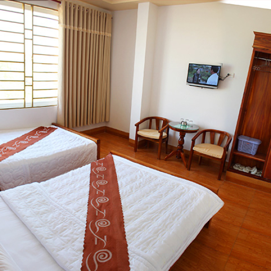 Phòng với diện tích khoảng 15m2 - 20m2 hướng thành phố, được trang bị các trang thiết bị tiện nghi như điều hòa nhiệt độ, internet tv, điện thoại , tủ lạnh mini ...v.v