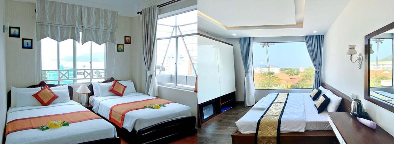 Phòng với diện tích khoảng 15m2 - 20m2 hướng thành phố, được trang bị các trang thiết bị tiện nghi như điều hòa nhiệt độ, internet tv, điện thoại , tủ lạnh mini ...v.v